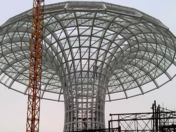 二、球形网架结构因其结构新颖,受力合理,自重轻、用钢量低等优点。如大型体育场馆球形合山螺栓球网架、公共场馆球形网架、电厂合山螺栓球网架、水泥工业球形网架、仓储物流球形网架、合山干煤棚工业球形网架、合山收费站合山加油站球形网架、展览中心、影剧院、商场、航站楼、候车厅、工厂合山车间、仓库、电视塔等球形螺栓球节点网架。国内球形网架结构主要分为:合山焊接球节点网架及螺栓球节点网架两种。螺栓球节点网架其构件工厂内加工量较大,现场安装便捷,适用于现场工期紧,合山施工条件、用电量受制约,网架形状复杂、合山杆件定位困难的异形结构。螺栓球节点球形网架系统基本由合山杆件、螺栓球、支撑支座等组成。按照节点形式可分为交叉合山桁架体系、四角锥体系、三角锥体系等。支撑方式多为固定支座支撑。对于大面积、大跨度及有特殊受力或伸缩要求的网架结构可采用橡胶支座、滑移支座、球铰支座等支撑形式,以满足结构自身的受力稳定、均衡,便于内力释放等设计要求。